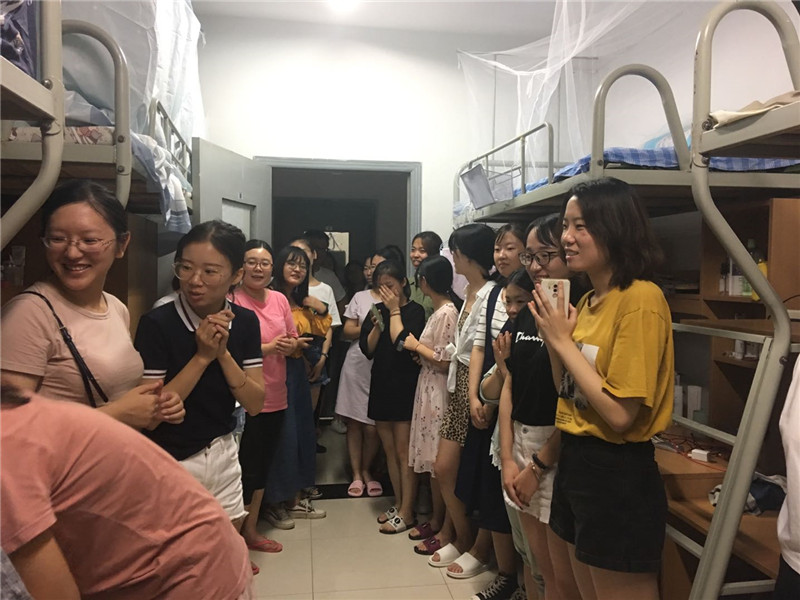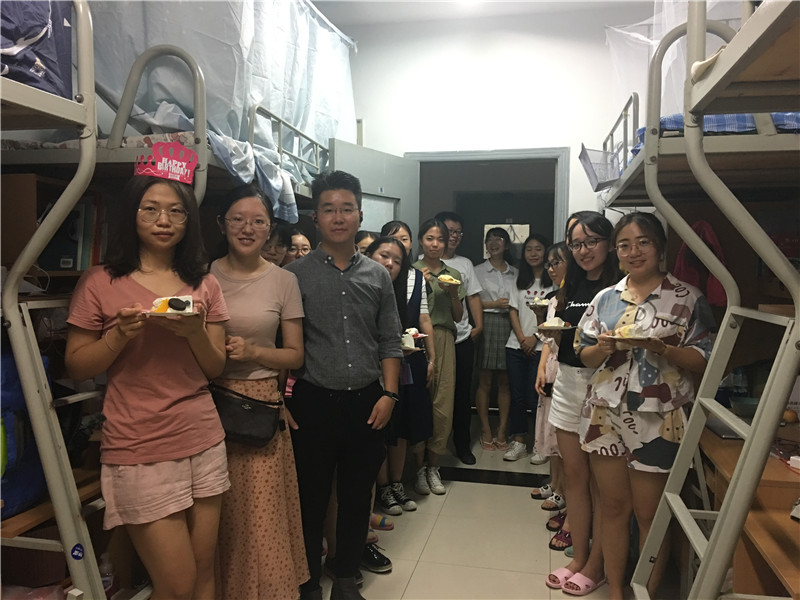 值得一提的是,为了让大家体验到学院的人文关怀,也希望通过一次小范围的生日会更加拉近同学们之间的关系,慰问小组准备了生日蛋糕为当天过生日的杨露同学补一次生日。两位老师召集了2019级所有新入学的女生一起,同唱生日快乐歌,为杨露同学庆祝生日,也为所有新同学送祝福。杨露同学激动地表示学院如此贴心,非常感动,以后希望和大家好好相处,共同度过两年多的同窗时光。