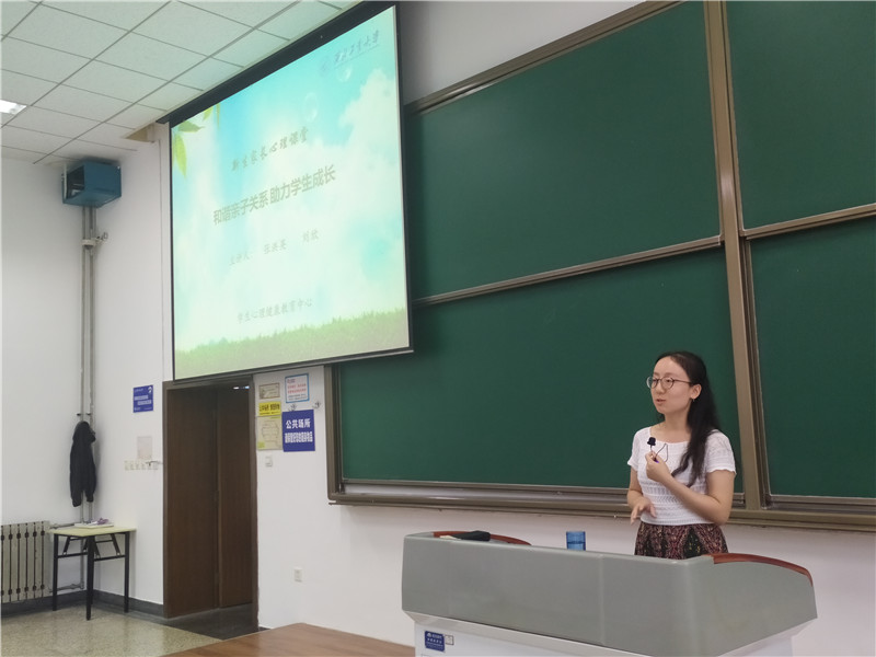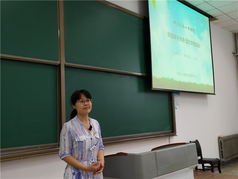 西工大新闻网8月27日电(郑雨)为做好家校沟通,促进家长关注学生心理成长,有效帮助学生适应大学生活,8月26日14:00,由学生处主办的2019级新生“家长心理课堂”在长安校区教学西楼D座106教室顺利举行。本次家长课堂共两场,主题为“和谐亲子关系,助力学生成长”,学生心理健康教育中心张洪英老师、刘欣老师分别担任两场讲座的主讲人,100余名新生家长到场聆听。