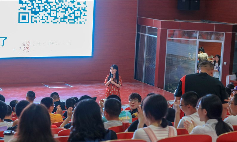 在表演间隙是有趣的互动游戏。在主持人的积极调动下,新生们逐渐抛弃刚开始的陌生感,站上台来表现自己——自我介绍、合作完成游戏……会场气氛变得更加活跃,一场大型的新生见面会正在进行。