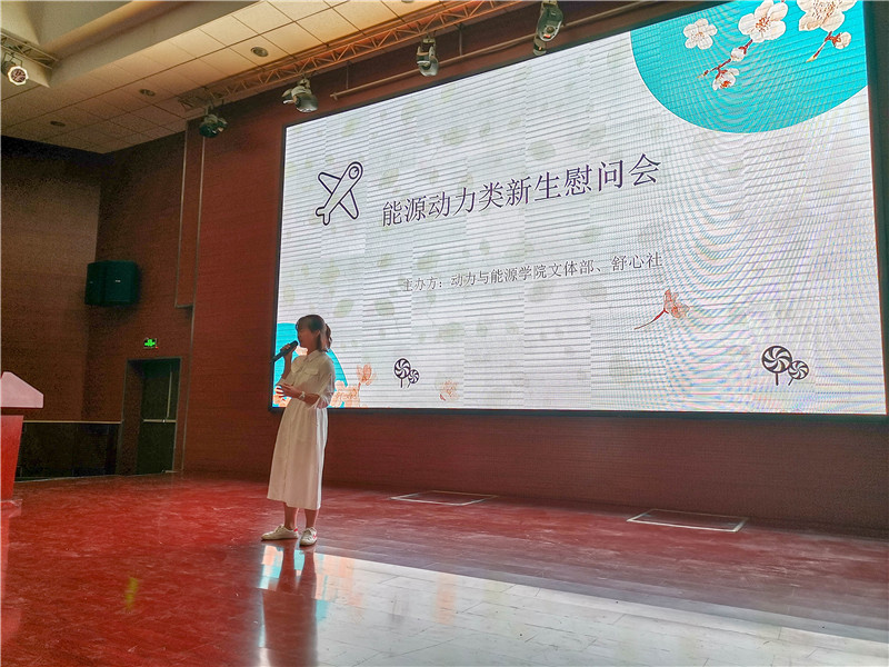 西工大新闻网9月2日电(罗潇 薛宇琦)8月31日晚上7点,动力与能源学院新生慰问晚会在教学西楼展开,为辛苦军训的2019级本科新生带来一场精彩纷呈的表演。晚会由动力与能源学院学生会与舒心社联合承办,由房煜富和高琪同学主持。