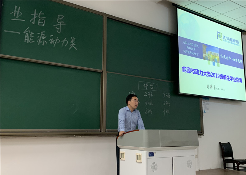 接下来,刘存良院长为2019级新生们带来了详细的学业指导。刘院长首先给同学们介绍了能源动力大类的学习方向,并且以学院培养方案和动能成长计划为载体,杰出院友为实例介绍并强调了能源动力类以培养家国情怀强烈,专业基础扎实,综合素质突出,创新思维活跃、善于沟通协作,有国际视野和全球胜任力人才的培养目标。随后,刘院长还为同学们详细讲解了2019-2020学年秋季学期的课程计划,为学生们本学期的选课指明了方向。最后,刘院长寄语同学们:“合抱之木,生于毫末;九层之台,起于累土!”,希望同学们脚踏实地,认真学习。