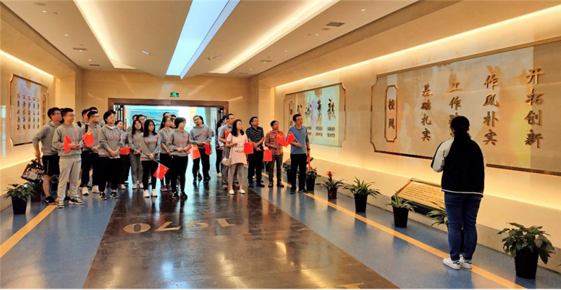 下午2点整,师生党员们手持国旗走入长安校区校史馆。校史馆面积1200平米,记录了学校在党的领导下艰苦办学、卓越发展的光辉历程。大家在志愿者的引导下,参观了展板、模型实物、校史文物、人物雕塑、场景还原等多种形式的校史展示内容;深入了解了“三源合一”、“华航西迁”、“西工大现象”、“歼-7E研制传奇”、“无人机方队亮相国庆60周年阅兵”等西工大校史中的高光时刻与辉煌成果。