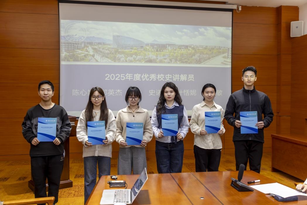 校史馆业务负责人张娅总结了2025年工作情况,从校史资料征集与整理、展览陈列优化升级、校内外参观接待服务、校史文化宣传普及、讲解员队伍建设等多个维度,全面回顾了年度工作中的亮点举措与扎实成效,并对2026年度重点工作进行了安排。会上,举行了“优秀校史讲解员”表彰,为2025年度在校史讲解接待工作中表现优异的同学颁发证书。